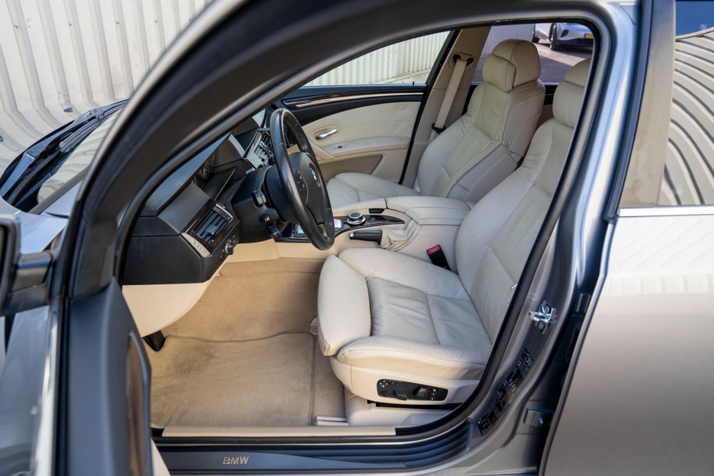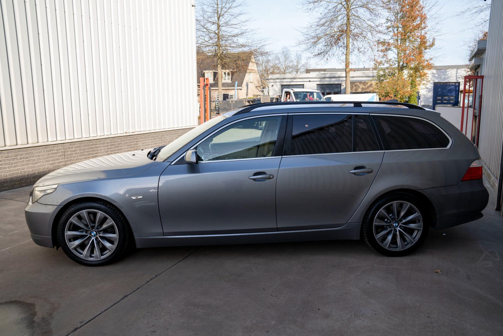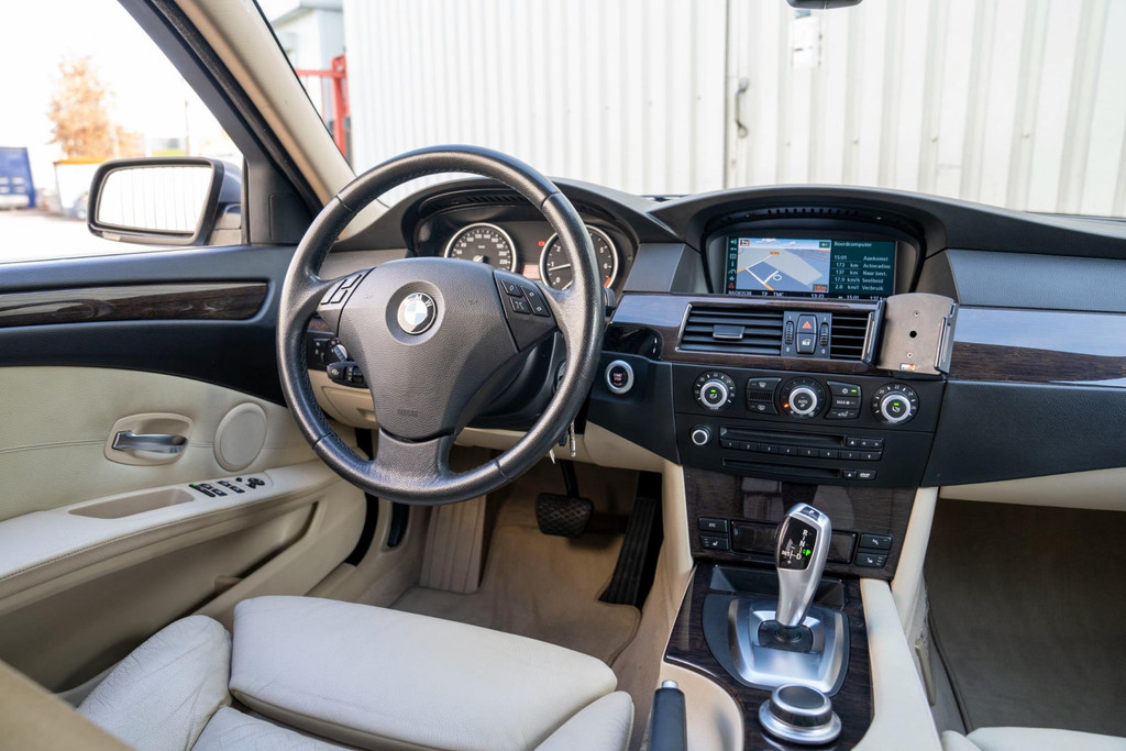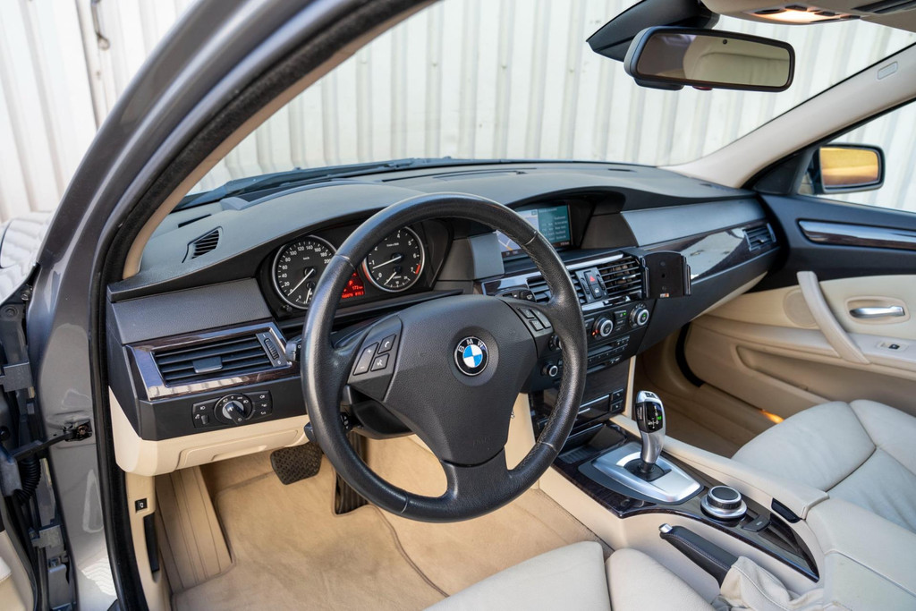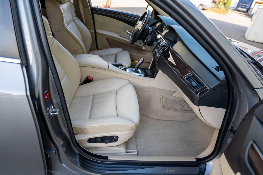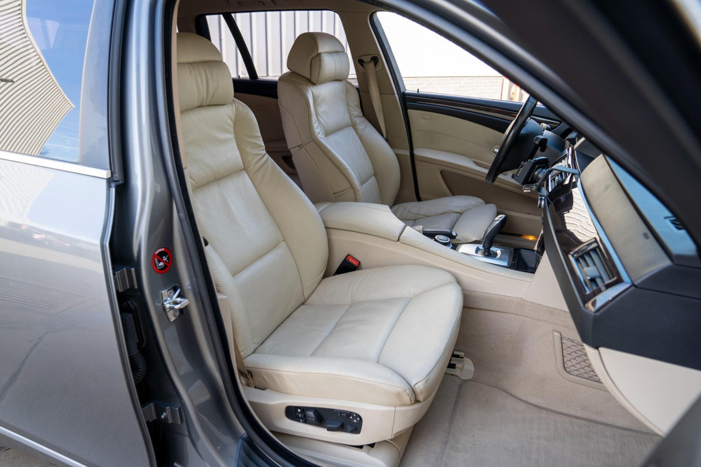 Nette BMW 5-serie touring automaat in luxe uitvoering met o.a. beige lederen bekleding en stoelverwarming voor en achter.