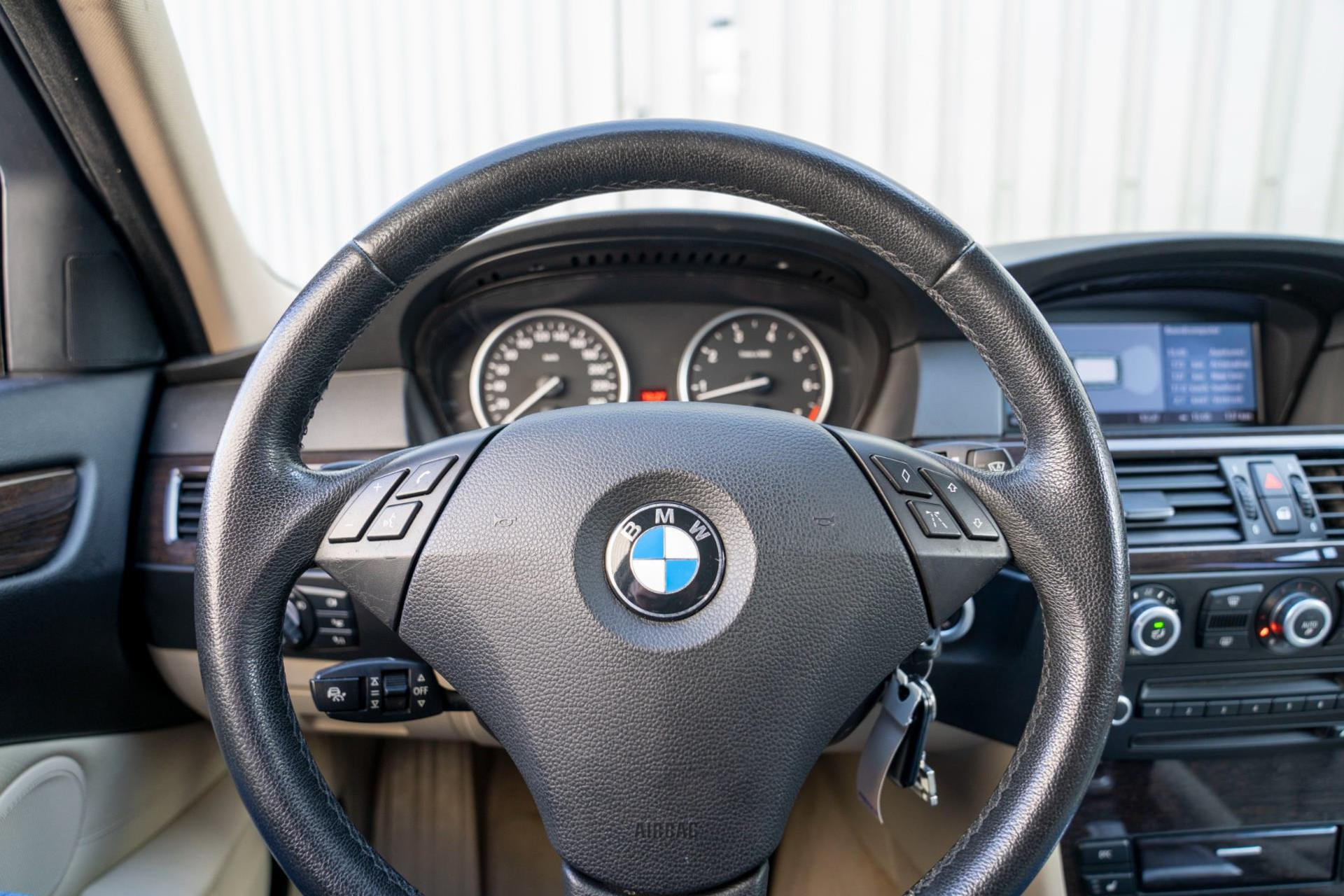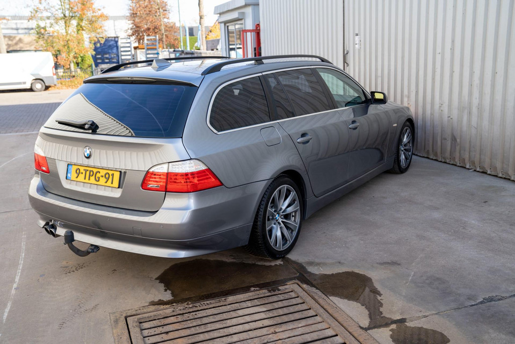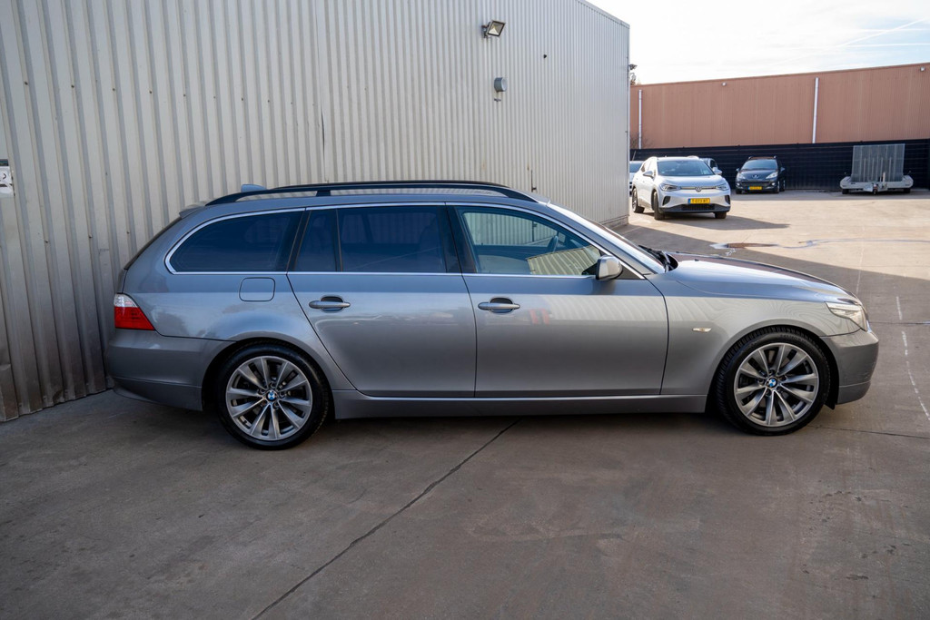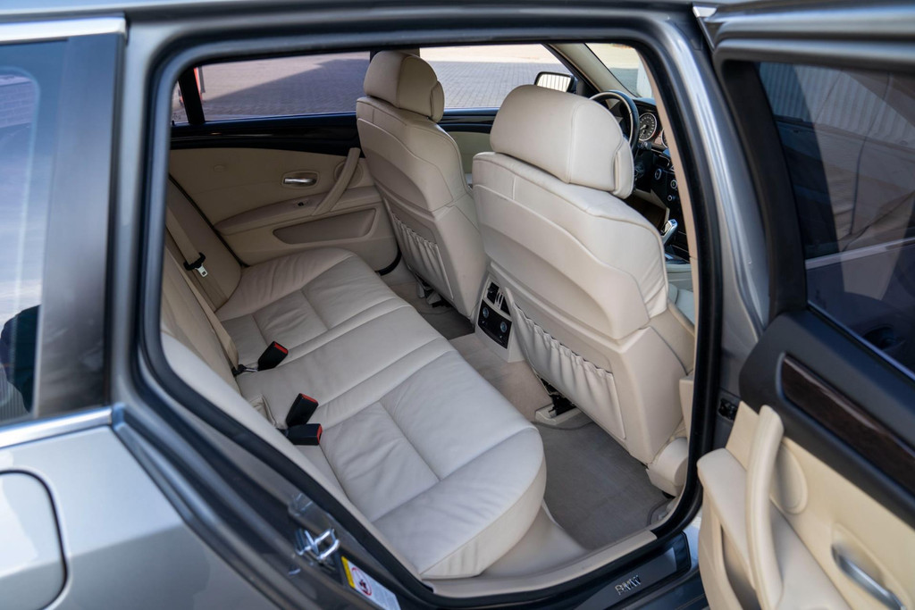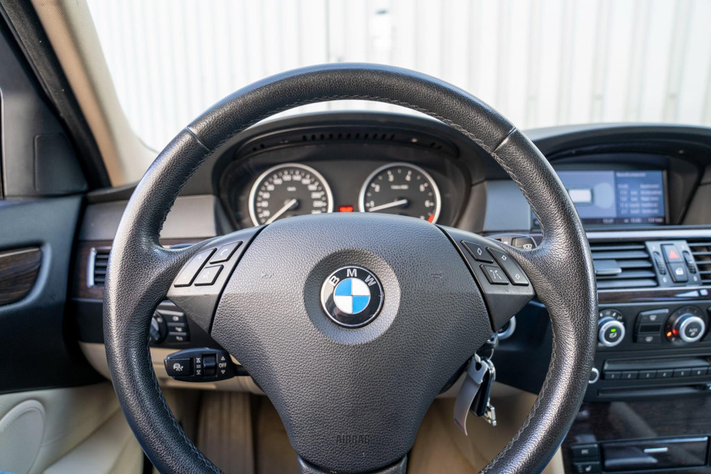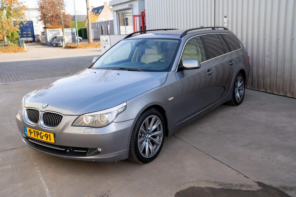 Nette BMW 5-serie touring automaat in luxe uitvoering met o.a. beige lederen bekleding en stoelverwarming voor en achter.