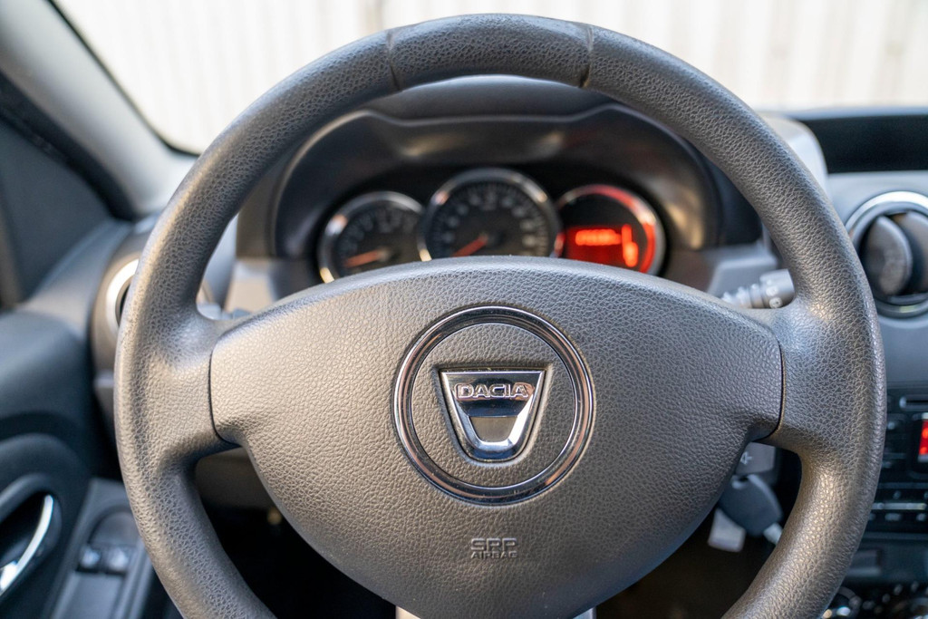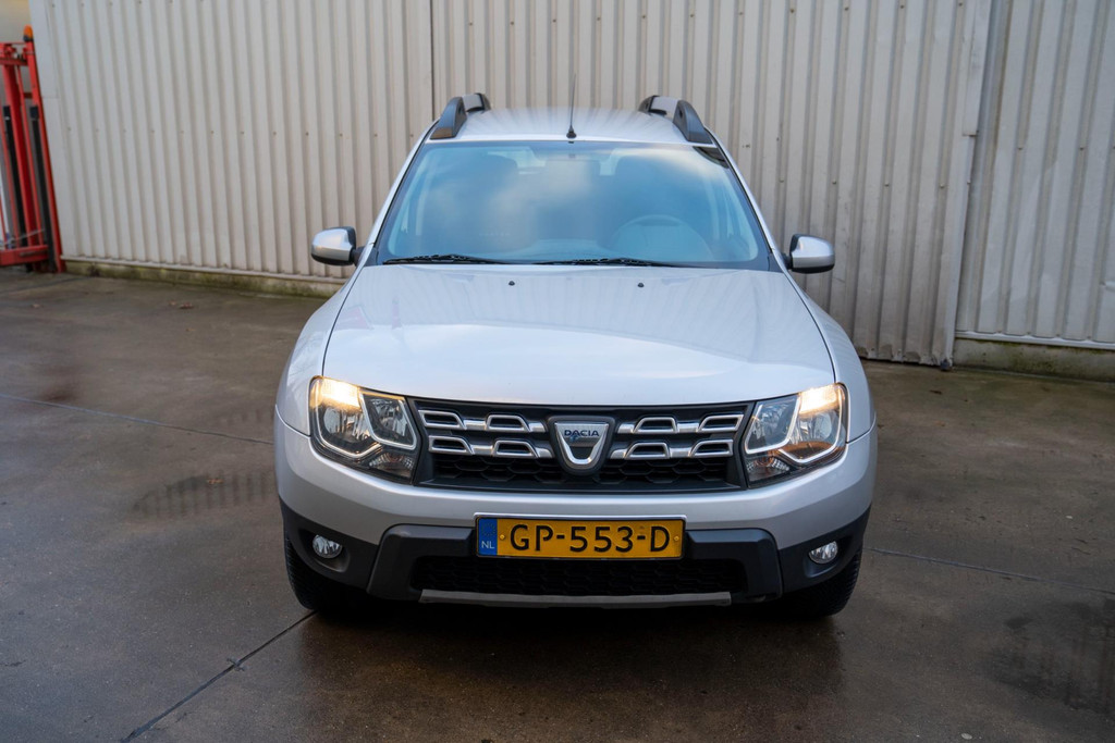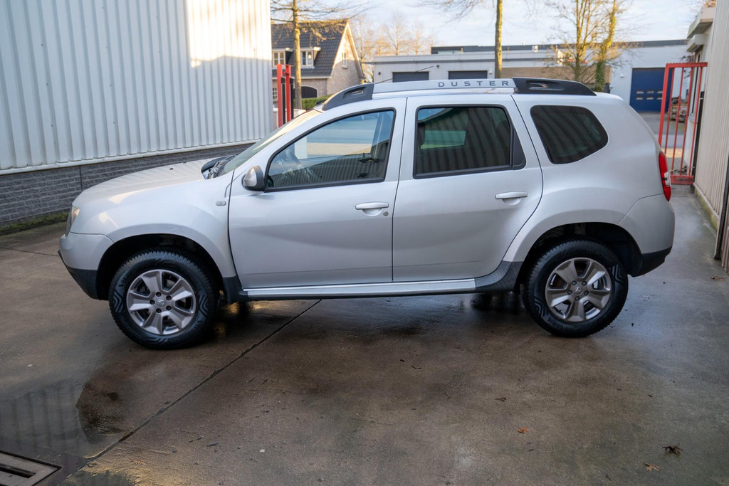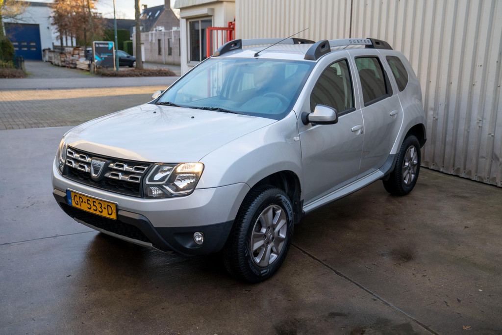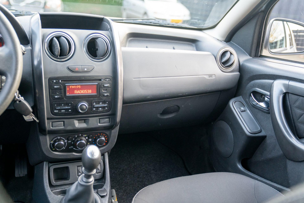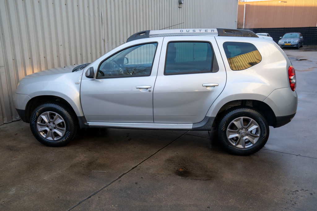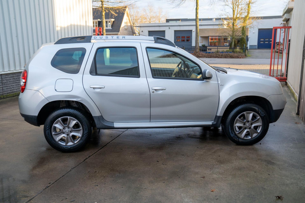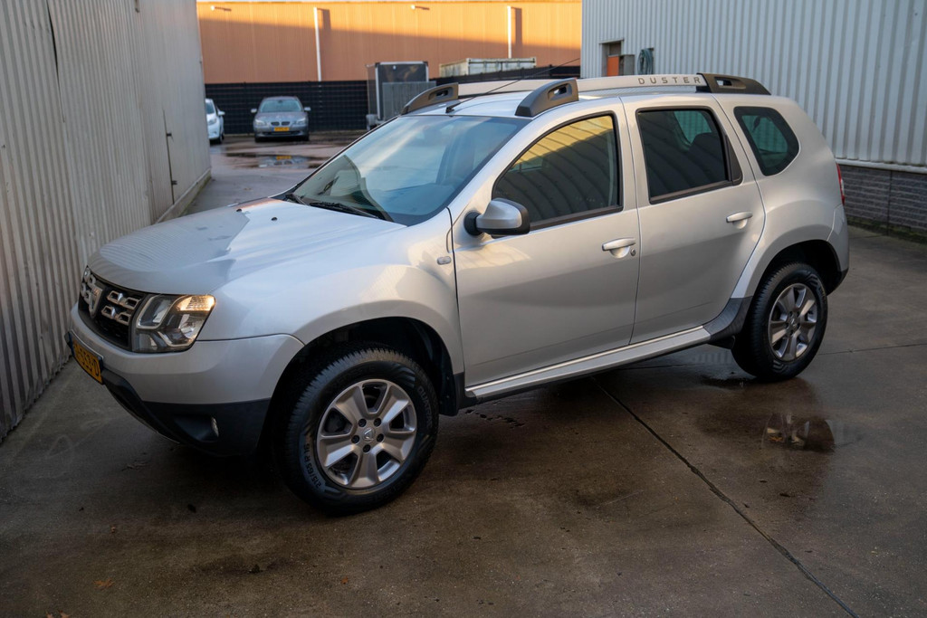 Stoere Dacia Duster, voorzien van o.a. airco, elektrische ramen vóór, dakrails en centrale deurvergrendeling met afstandsbediening. Comfortabele en robuuste SUV, geschikt voor dagelijks gebruik én langere ritten.