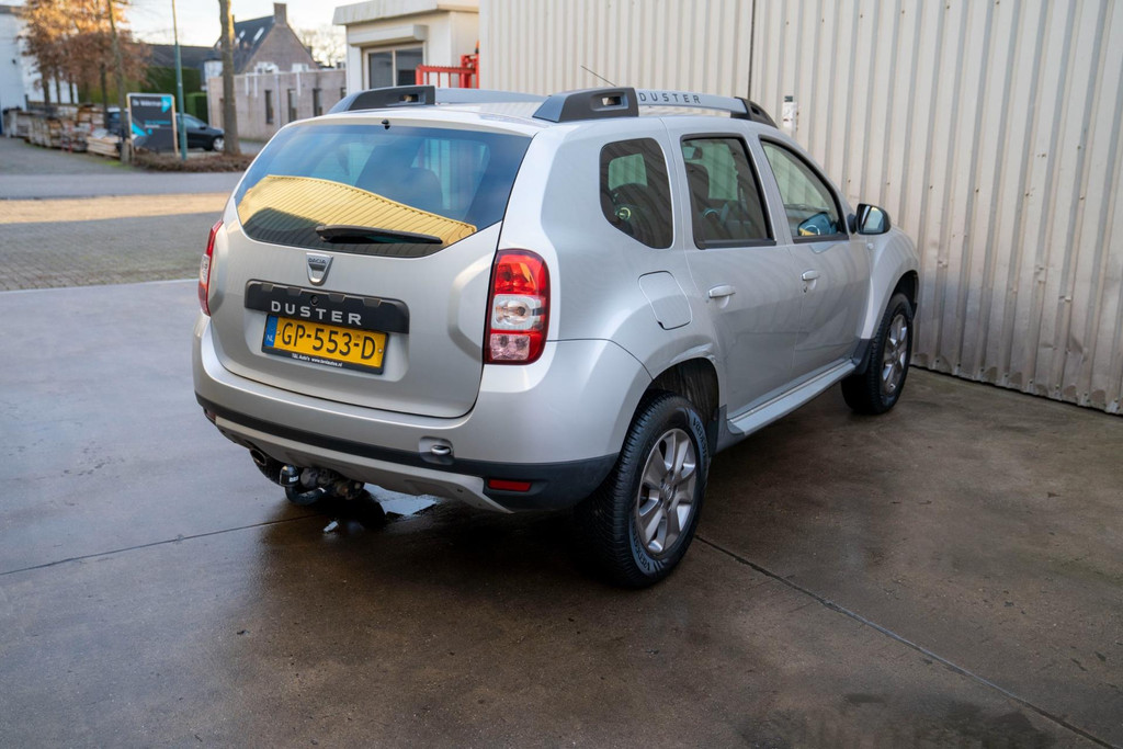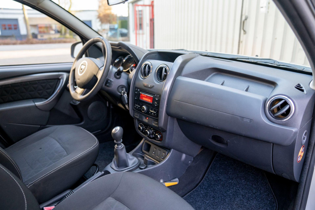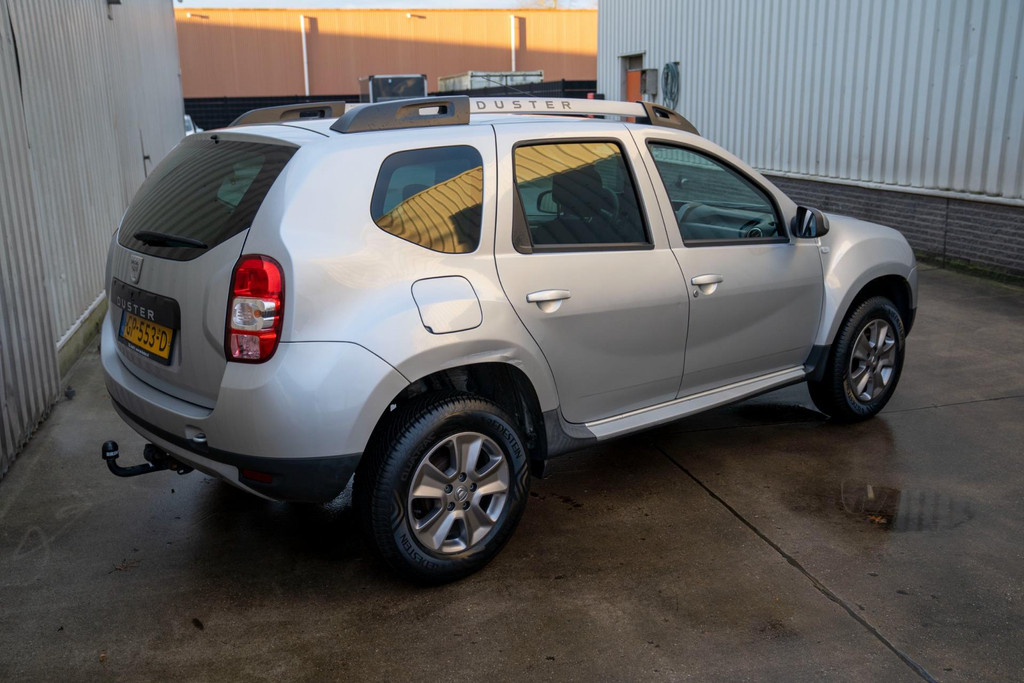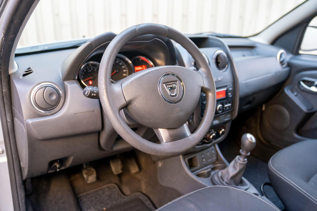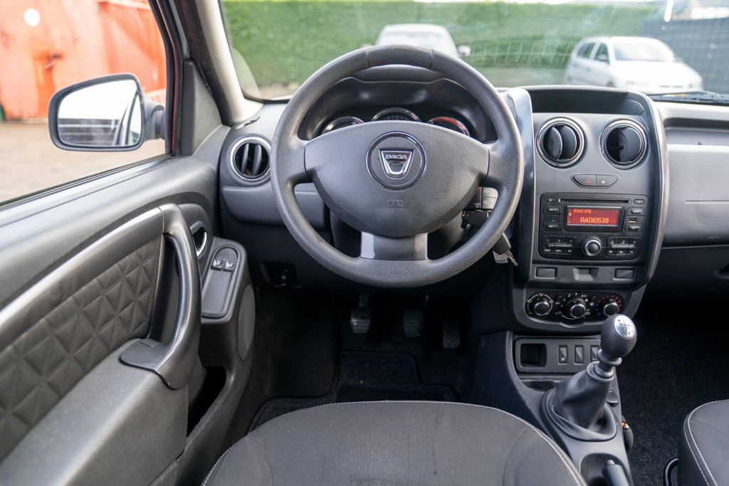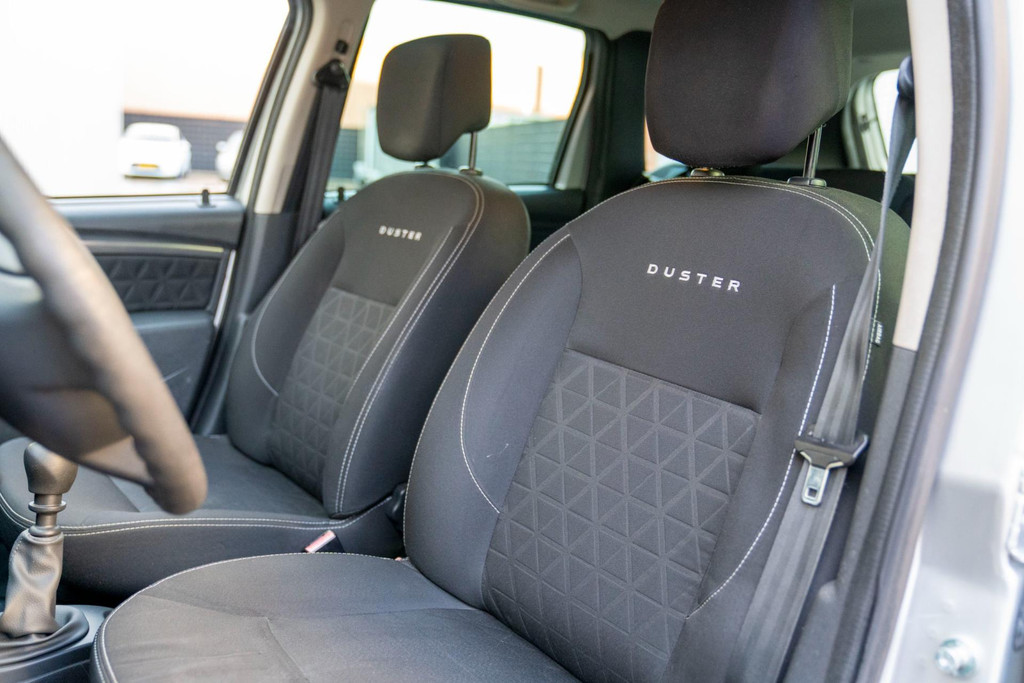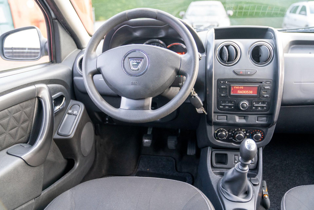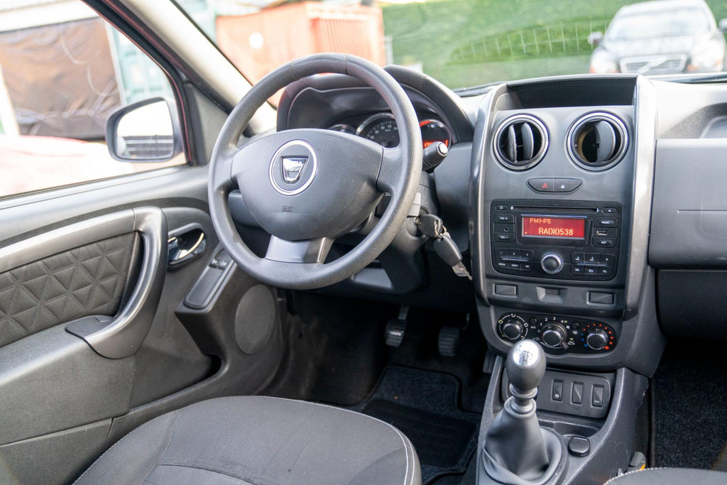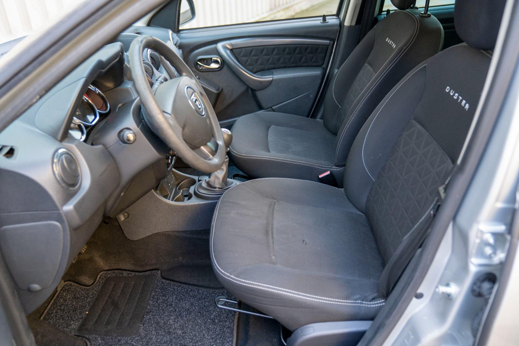 Stoere Dacia Duster, voorzien van o.a. airco, elektrische ramen vóór, dakrails en centrale deurvergrendeling met afstandsbediening. Comfortabele en robuuste SUV, geschikt voor dagelijks gebruik én langere ritten.