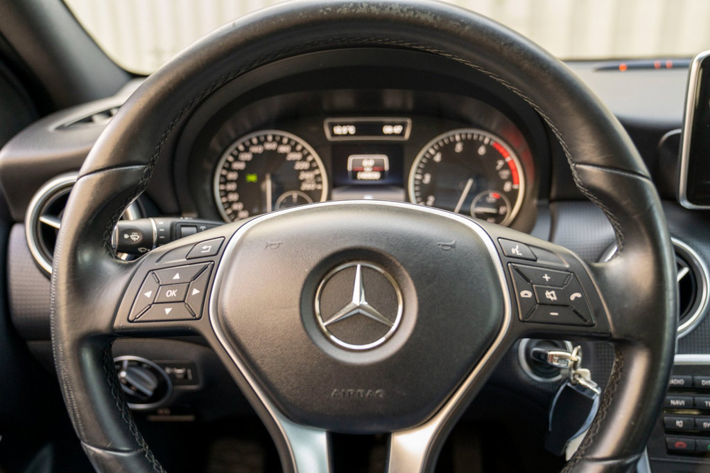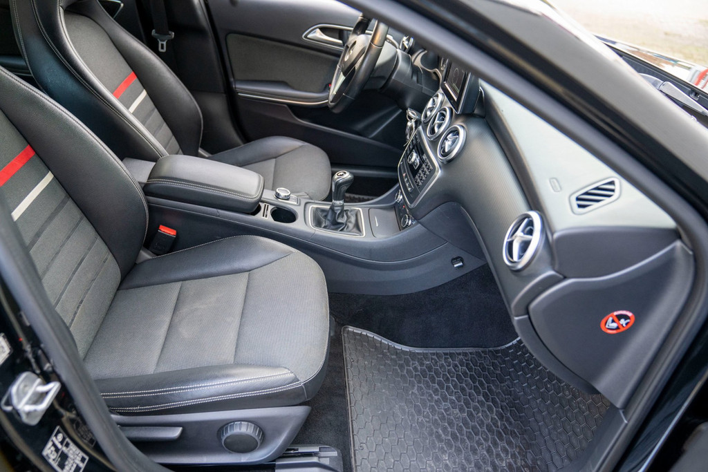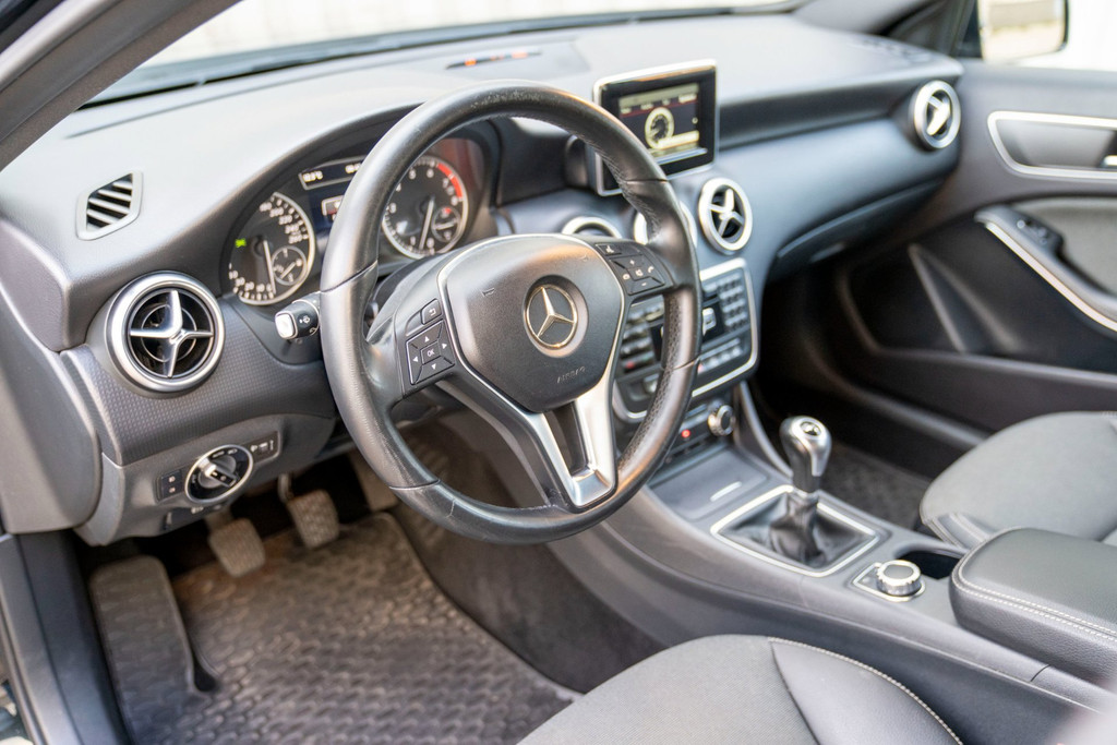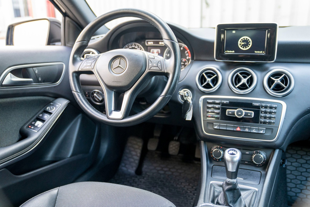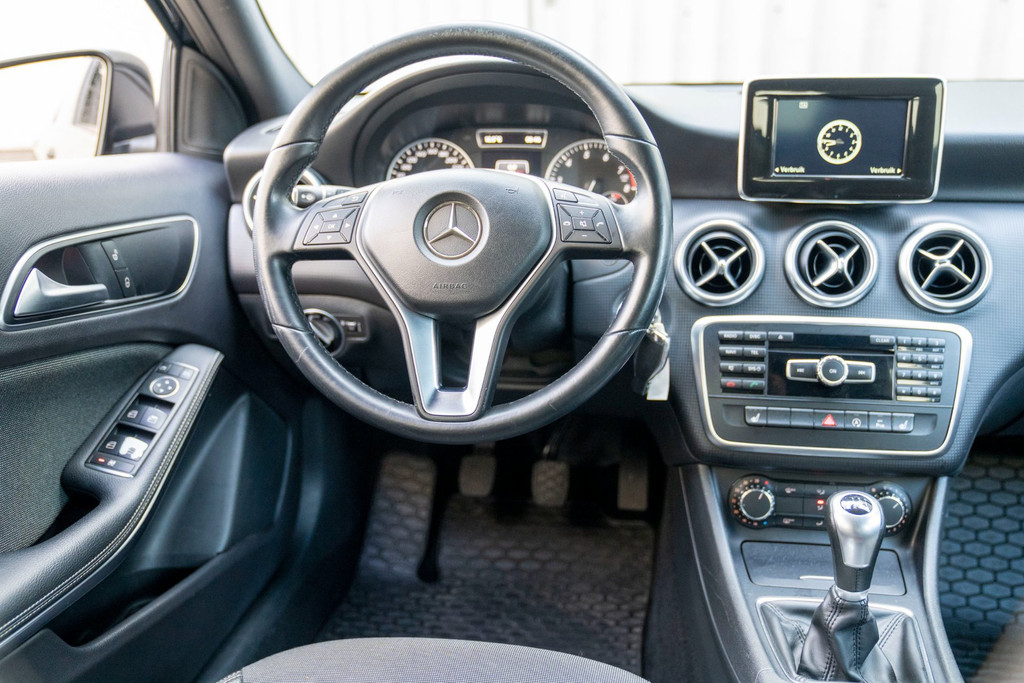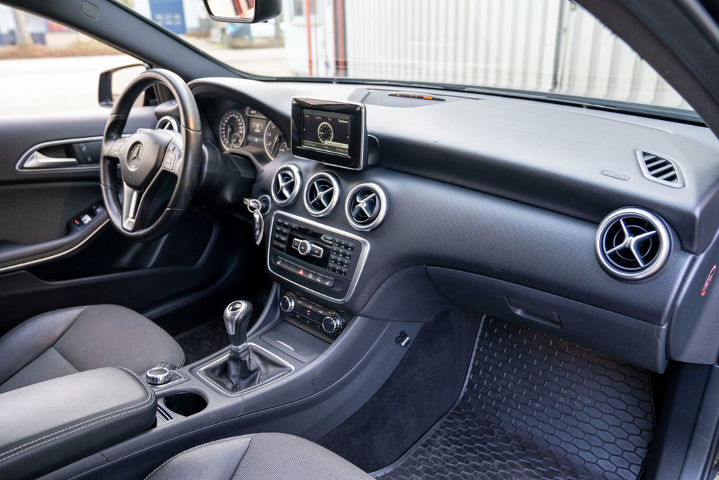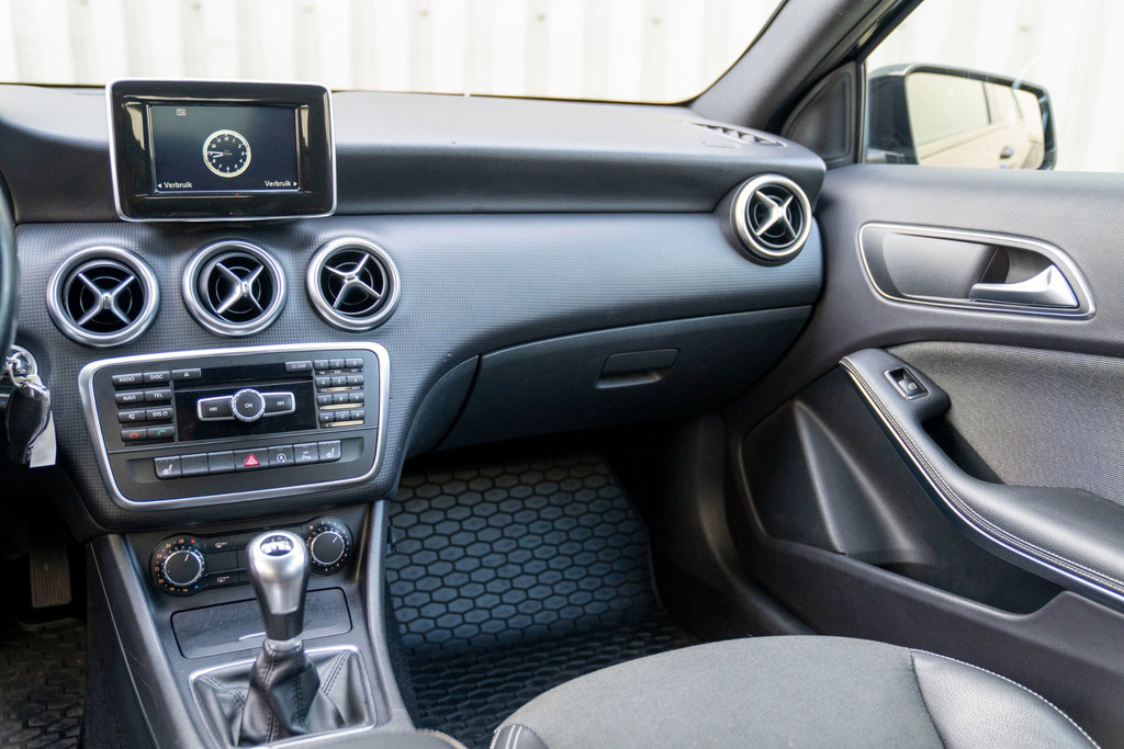Mooie zwarte Mercedes-Benz A-Klasse met navigatiescherm, 6-bak en ISOFIX. Sportief, comfortabel en ideaal voor zowel stadsverkeer als langere ritten. Compact van buiten, praktisch en ruim van binnen.