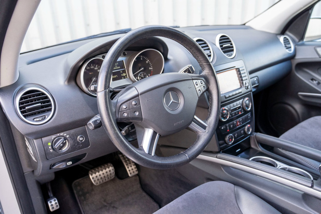Stoere en praktische Mercedes-Benz ML met sterke V8. Luxe uitgevoerd met half lederen/alcantara interieur, dakraam en luchtvering voor optimaal rijcomfort. Verkeert in nette staat. Ideale combinatie van sportiviteit, ruimte en comfort.